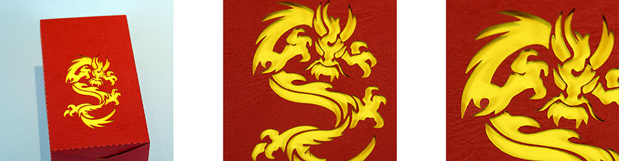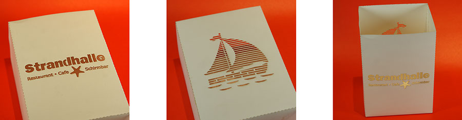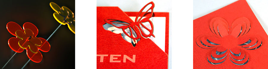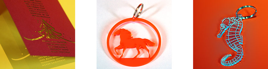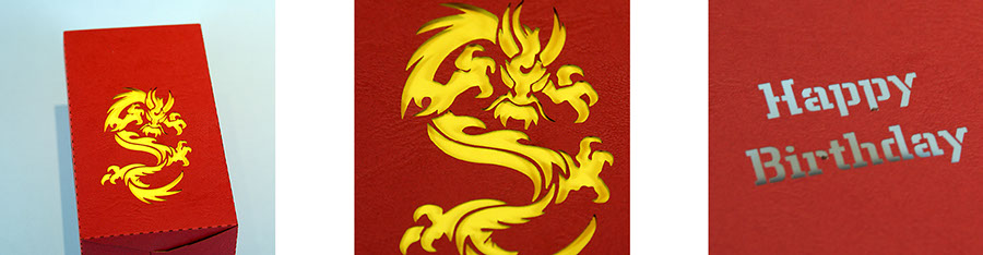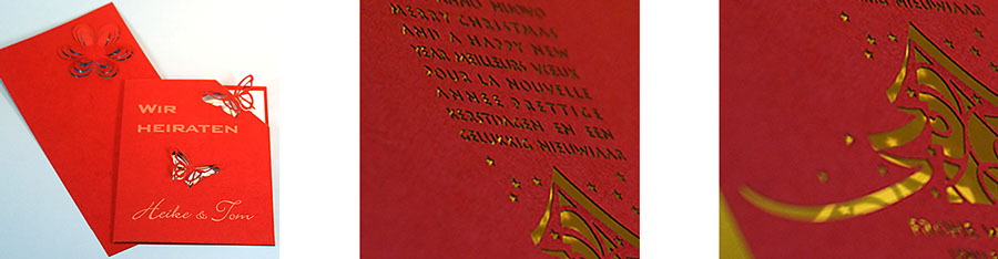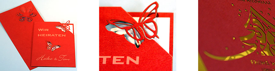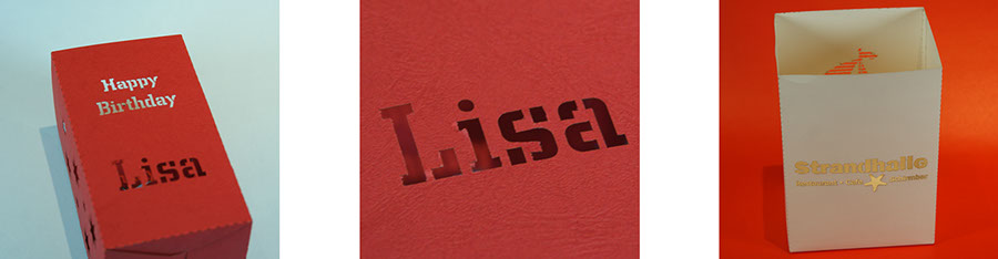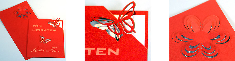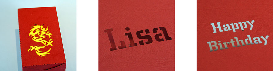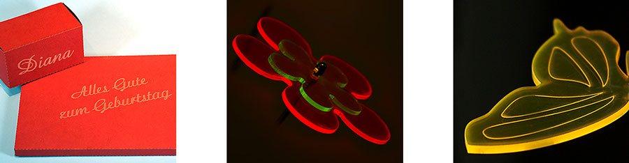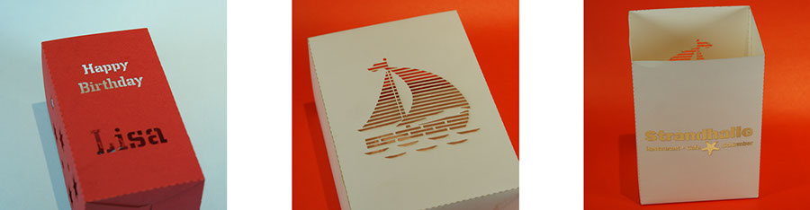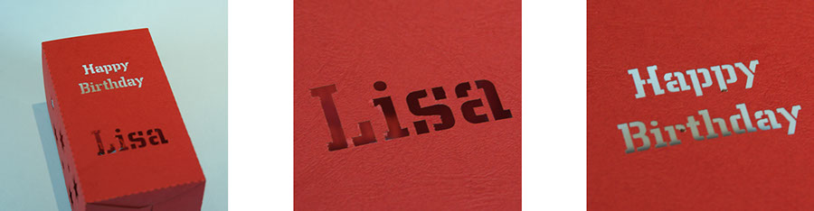 Ähnlich dem Scherenschnitt können filigrane Formen oder auch Text ausgeschnitten werden.