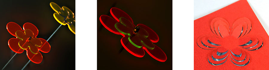 Durch verschachtelte Schnitte, bei denen Formen nur angeschnitten werden, kann durch umbiegen dieser Formen ein 3D-Effekt erreicht werden.